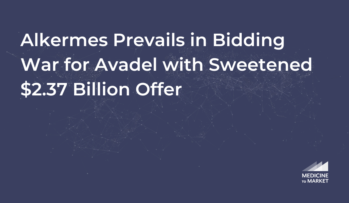 Under the final Alkermes offer, Avadel shareholders will receive $21.00 in cash per share at closing plus one non-transferable CVR. Assuming the milestone payment is achieved, the transaction values Avadel at up to approximately $2.37 billion on a fully diluted basis.